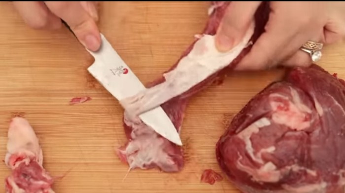- Keringkan daging, buang silver skin lalu potong-potong.