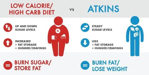 Meningkatnya produksi insulin mendorong tubuh kita untuk menyimpan energi dari makanan sebanyak-banyaknya, serta mengurangi kemungkinan pembakaran lemak tubuh sebagai alternatif sumber energi. Diet Atkins menganjurkan untuk mengkonsumsi lebih banyak protein dibanding pola makan pada umumnya.