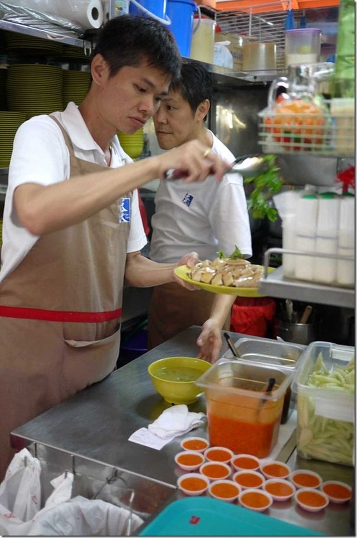 Brian Wong sebagai pecinta sejarah asal Singapura menjelaskan bahwa gerai chicken rice pertama berdiri tahun 1940. Pendirinya Wong Yiguan, seorang pria asal Qionghai yang belajar membuat sajian ini ke Wenchang. Sementara di Malaysia, Norma Musa sebagai Chef ternama Malaysia, mengaku bahwa catatan sejarah mengenai hal ini tidak terdokumentasikan dengan baik, namun gerai chicken rice tertua di Malaysia sudah ada sejak tahun 1939.