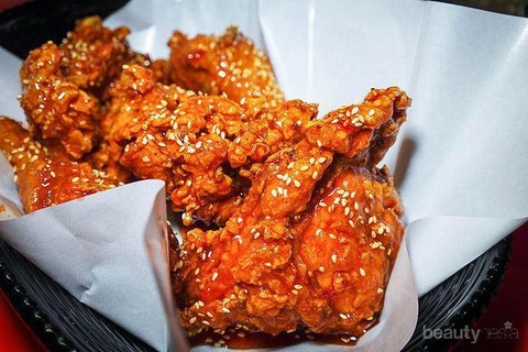 Ayam goreng tepung yang crispy dalam balutan saus ala Korea berwarna merah yang pedas, lezat, dan menggugah selera. Walaupun dibalut dengan saus, kulit luar ayam akan terasa renyah saat digigit. Bumbu marinade berupa bawang putih, tomat, dan bumbu-bumbu rahasianya pun diserap sempurna sebelum digoreng. Jika kamu bosan dengan ayam goreng tepung biasa, coba ayam goreng tepung ala Korea yang satu ini.