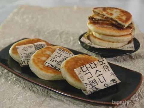 Hotteok merupakan sejenis pancake ala Korea yang diisi dengan kacang tanah, biji wijen dan madu. Namun beberapa penjual mengganti isian Hotteok dengan buah, daging maupun sayur.