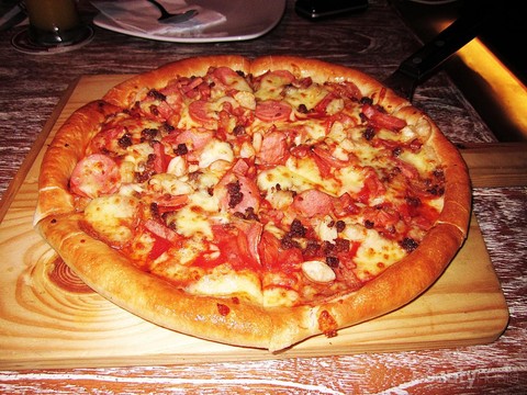 Buat kamu penggemar pizza, coba cicipi aneka pizza a la Millan Pizzeria Cafe di Depok. Salah satu menu andalan mereka adalah Pizza Meat Max yang terbuat dari roti tipis pizza yang empuk dan garing. Toppingnya berupa taburan daging cincang dan sosis sapi yang dipotong bulat dan kotak. Yang bikin unik, pizzanya dilapisi dengan keju mozzarella yang meleleh. Hmm, so yummy!