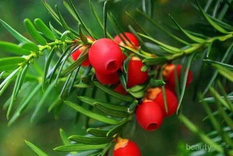 Foto: https://id.pinterest.comMeski memiliki warna merah yang cantik nan menggoda, buah ini bisa menyebabkan kematian bagi seseorang yang mengonsumsinya secara langsung, lho. Hal ini karena buah yew berries mengandung racun taxin yang hanya bisa hilang jika diolah dengan proses yang benar.