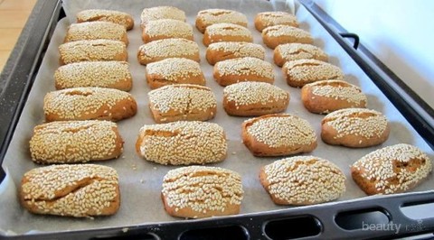 - Setelah 25 menit, berikutnya adalah membentuk adonan dengan tangan. Ambil adonan secukupnya yang kemudian dibentuk lonjong. Samakan semua ukuran adonan yang dibentuk agar hasilnya tidak belang. Setelah itu, olesi adonan dengan sedikit air dan taburi dengan wijen.