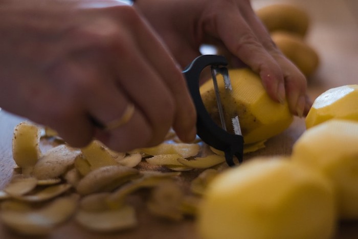 Ilustrasi mengupas kentang/Foto: Unsplash.com/Sergio Kian