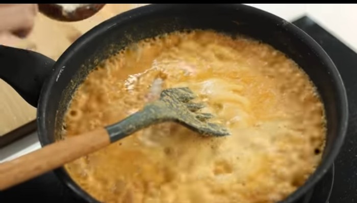 3. Tambahkan gula merah, cuka, garam, gula pasir, dan kaldu bubuk, masak hingga mendidih, sisihkan.