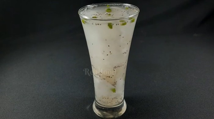 Masukkan rambutan ke dalam gelas, lalu masukkan daging kelapa muda, tambahkan chia seeds, masukkan cabe rawit, kemudian beri perasan jeruk nipis. Terakhir, tuang air kelapa muda. Aduk-aduk lalu siap dinikmati. Kamu juga bisa menambahkan es batu untuk minuman yang segar dengan cita rasa manis, asam, dan sedikit pedas ini.