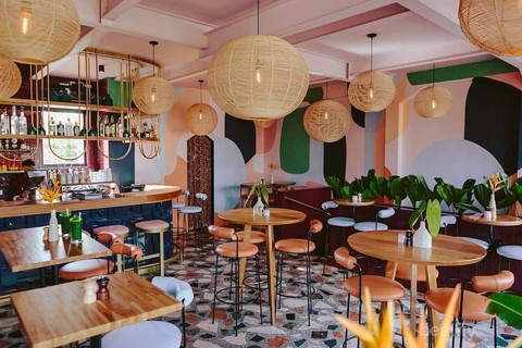 Cafe dengan bangunan bergaya