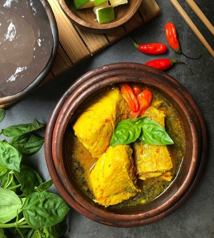 Papeda, bubur sagu yang bertekstur kenyal, menjadi pendamping sempurna karena mampu menyerap kelezatan kuah ikan. Hidangan ini mencerminkan kekayaan laut dan budaya kuliner masyarakat timur Indonesia.