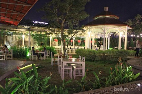 chef memasak makanan untukmu. Suasana romantis akan kamu rasakan ketika malam hari, karena banyak lampu-lampu taman yang menghiasi tempat ini. Khusus hari Jumat, kamu bisa menikmati makanan dengan menonton live music. Aneka olahan coklat juga masih menjadi andalan dari cafe ini.