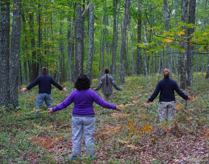 Tumbuh perasaan lebih bahagia dan tenang setelah menghabiskan waktu di hutan/Foto: Pinterest/Cindy Kinkead