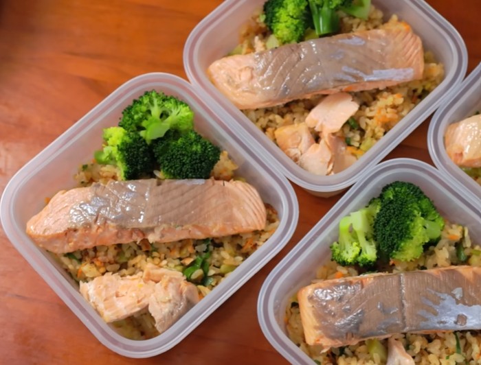 Menu simple pakai rice cooker yang bisa menurunkan berat badan. Rice cooker salmon bento/Foto: youtube.com/CHEF'S LABO