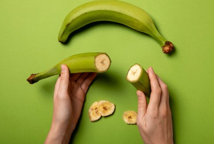 Pisang hijau atau pisang yang belum matang memiliki rasa yang kurang manis dan tekstur keras. Pisang ini kaya akan serat probiotik yang berperan sebagai bahan bakar bagi bakteri usus yang bermanfaat, sehingga mendukung mikrobioma yang sehat.