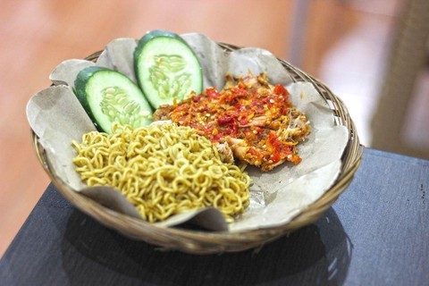 Selain nasi putih, ayam geprek di sini juga bisa disajikan dengan indomie goreng yang lezat. Dengan harga menu yang berkisar Rp 4.000 - Rp 27.000, ayam geprek ini bisa dipesan melalui layanan ojek online juga lho.