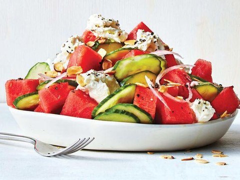 Pecinta semangka wajib banget mencoba resep salad watermelon, cucumber, and burrata Salad.