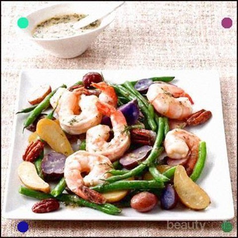 Suka seafood? Kamu bisa kok mengkombinasikan seafood dengan salad sehat ala restoraran. Salad sehat ini bernama String Bean and Fingerling Potato Salad with Shrimp yang cocok sebagai salah satu menu makanan diet kamu.