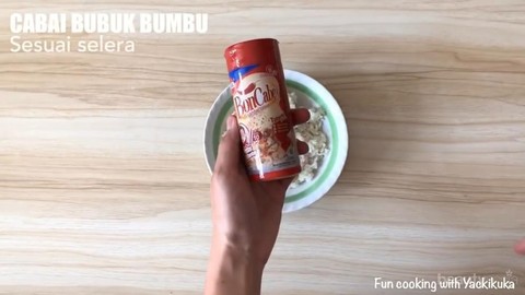 2. Tambahkan cabai bubuk yang memiliki perasa. Bsa mencoba dengan bon cabe sachet atau botol yang banyak tersedia di warung dan supermarket. Dengan cabai bubuk perasa sudah tidak perlu menambahkan garam lagi.