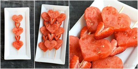 Cara membuat : - Potong semangka pipih kemudian potong dengan cetakan cutter berbentuk hati.