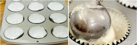 1. Keduk es krim dan letakkan ke dalam kertas cupcake yang sudah terlebih dulu disusun diatas cetakan.