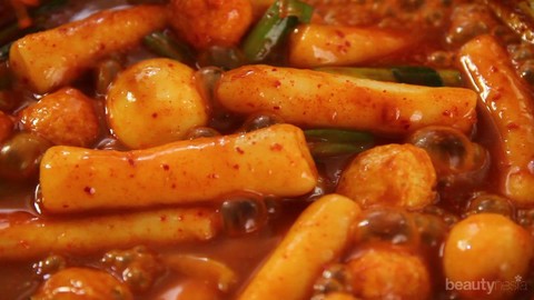 - Terakhir, masukkan isian tambahan, mulai dari telur rebus, bakso seafood, sampai sosis. Masak hingga kuah saus mengental. Beri taburan daun bawang dan wijen. Tteokbokki siap disajikan.