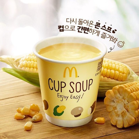 McDonald's Korea juga memiliki menu favorit yang tak ada di McDonald's Indonesia lho. Menu favorit sekaligus terbaru ini adalah sup jagung. Sup jagung hangat ini di hidangkan di gelas berukuran sedang yang sangat cocok dinikmati saat musim dingin.
