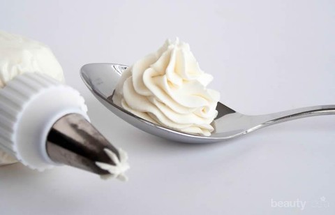 - Lapisi permukaan atas dan samping cake dengan whipped cream