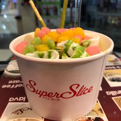 Rekomendasi ice cream roll di Jakarta yang terakhir adalah Super Slice. Buat kamu yang tinggal di daerah Jakarta Utara, coba deh cari stand ice cream ini di Mall Artha Gading. Super Slice menyajikan ice cream roll aneka rasa yang dilengkapi dengan topping lezat. Selain ice cream rasa buah-buahan, di tempat ini kamu juga bisa mencoba ice cream roll rasa jagung, lho. Pokoknya dijamin enggak menyesal deh buat cobain ice cream roll di Super Slice.