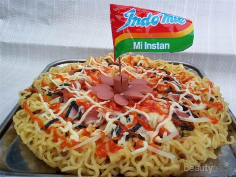 Ladies, bingung untuk membuat suguhan makanan untuk teman ketika berkunjung ke rumah? Yuk, coba untuk membuat kreasi mie pizza. Caranya cukup murah dan mudah lho. Siapkan dua bungkus indomie goreng dan dua buah telur. Kemudian untuk toppingnya, kamu bisa memakai bawang bombay, sosis dan saus seperti pizza pada umumnya. Selanjutnya tumis sosis dan bawang bombay dan rebus indomie goreng tadi. Setelah mie matang, campurkan mie tersebut dengan telur dan bumbu indomie. Kemudian panaskan teflon dan masukkan adonan dan tunggu hingga matang. Setelah matang, balikkan pizza tersebut lalu beri toping yang telah disiapkan tadi. Maka pizza indomie siap untuk dihidangkan.