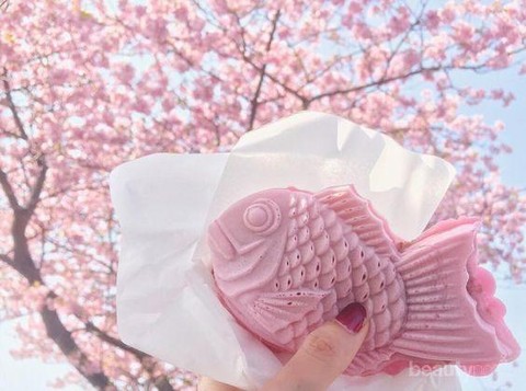 Meski nama taiyaki berarti 'ikan tai panggang', jajanan ini sebetulnya terbuat dari adonan tepung terigu yang diisi pasta kacang merah dan sama sekali tidak mengandung bahan ikan. Saat musim semi, taiyaki biasanya hadir dalam warna merah muda yang cantik bak bunga sakura. Cemilan ini sangat lezat dinikmati selagi masih hangat.
