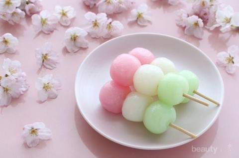 Disebut 'hanami dango', sebab kue dango ini menjadi camilan wajib yang dinikmati saat hanami atau piknik di bawah pohon sakura. Kue dango sendiri adalah camilan tradisional Jepang yang terbuat dari adonan tepung beras yang dibentuk bulat-bulat dan disajikan dengan tusukan bambu. Berbeda dengan jenis kue dango lainnya, hanami dango memiliki 3 warna yang khas yakni merah muda, putih dan hijau.