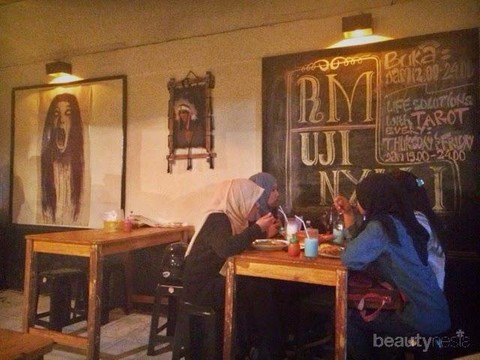 Pernahkah Anda menikmati makanan ditemani dengan para hantu di sisi Anda? Apabila belum, cobalah datang ke Rumah Makan Uji Nyali. Rumah makan ini tidak hanya menyajikan makanan dengan nama-nama yang unik, seperti Mr. gepeng untuk sebutan tempe mendoan, rumah kentang untuk sajian mashed Potato, tetapi juga menghadirkan wahana uji nyali. Sambil menunggu makanan tiba, para pengunjung bisa mencoba memasuki wahana rumah hantu. Dijamin memcu adrenalin. Address: Jl. Guntur No. 21, Belakang Ngopdul Burangrang https://www.infobdg.com/v2/10-tempat-makan-unik-di-bandung/#lightbox[14448174217]/2/ |