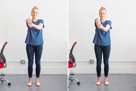 Foto: https://id.pinterest.com/pin/562175965986580678/Capek karena jari-jarimu terus mengetik di papan keyboard? Gerakan yang satu ini bisa membantu meringankan pegal-pegal jari kamu, Ladies. Berdirilah, renggangkan sedikit kaki kalian agar sejajar dengan bahu. Tarik tangan kalian ke depan kemudian renggangkan jari-jari tangan. Tekuk siku kalian dan tahan beberapa saat. Ulangi gerakan tersebut hingga rasa pegal mereda.