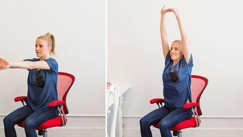 Foto: https://id.pinterest.com/pin/538743174173796248/Stretching yang satu ini bisa kalian lakukan sambil duduk di kursi kerja kamu, Ladies. Duduklah dengan tegap, renggangkan kedua kaki kalian sebahu. Tarik kedua lengan dan tautkan keduanya. Lakukan gerakan ke depan dan belakang secara bergantian. Tahan beberapa detik dalam setiap gerakan.