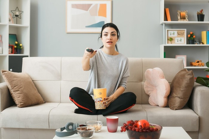 Ilustrasi makan sambil nonton TV/Foto: Freepik.com/stockking