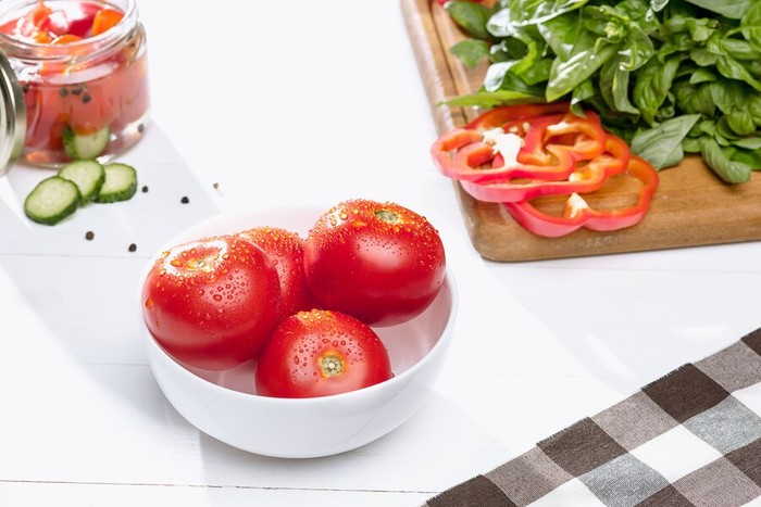 Buah berwarna merah ini terkenal dengan kandungan vitamin C yang tinggi. Tidak hanya itu, kandungan antioksidan dalam tomat berfungsi sebagai antiradang di seluruh tubuh. Tomat juga kaya akan kalium, yang menurunkan kadar natrium penyebab perut kembung dalam tubuh. Beauties bisa mengonsumsinya secara langsung atau dimasak.