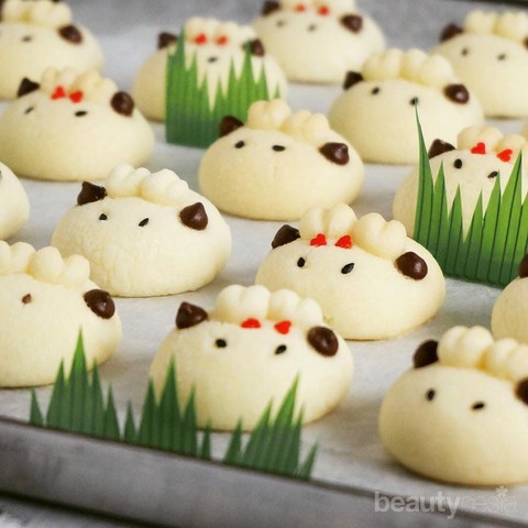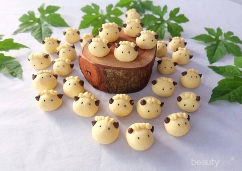 - Hias adonan seperti kambing dengan chocochip sebagai telinga, wijen mata, bulatan kecil yang untuk rambut.