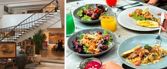 Mengusung konsep estetika tropis ala Bali yang berpadu rapih dengan modern interior, Jiwan Coffee & Things berada di Jl. Halimun No. 1–3, Babakan, Bogor Tengah. Bangunannya luas dan terbuka, dengan kolam renang kecil di area belakang yang jadi spot foto favorit pengunjung. Suasana santainya juga cocok untuk WFC, apalagi dengan deretan lukisan dinding artistik.