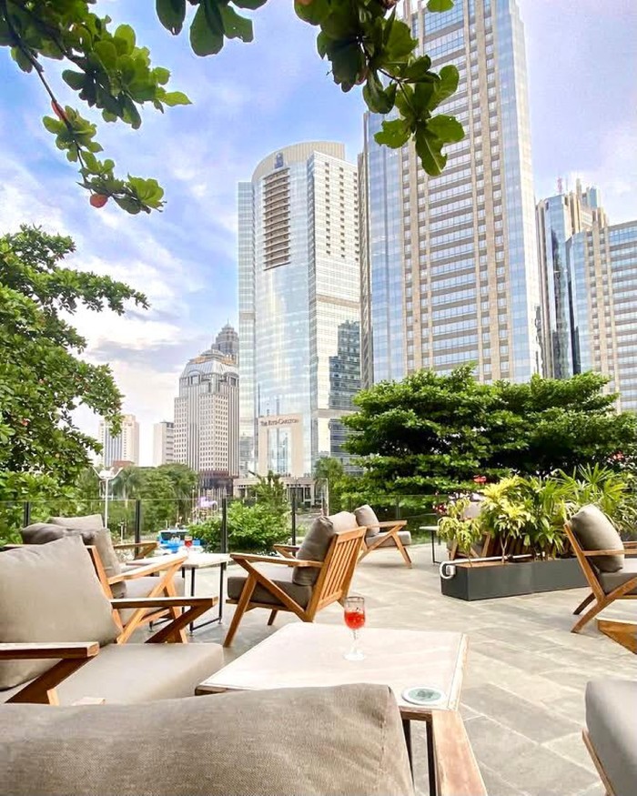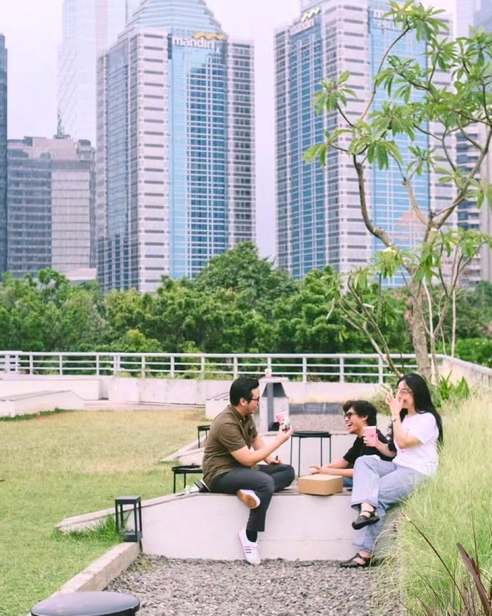 Areanya menyatu dengan restoran Sentosa yang menawarkan suasana bersantai pada lapangan hijau yang luas, sekaligus menyuguhkan pemandangan gedung-gedung perkantoran yang indah.