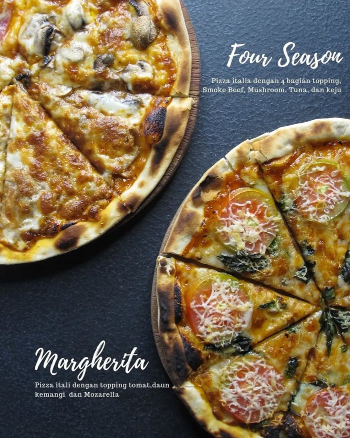 Banyak varian topping dengan keju yang melimpah bikin tempat ini selalu ramai dikunjungi. Menu mereka juga selalu banyak yang baru, seperti spinach mush dengan bayam, homemade carbonara sauce, smoked beef, mozzarella, dan lain-lain. Selain itu, ada menu love matcha, perpaduan matcha, mozzarella, dan taburan kacang almond.