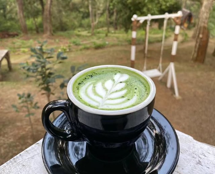 Berada di tengah hutan membuat kafe ini memiliki suasana yang sejuk, pas sekali untuk duduk-duduk sambil ditemani segelas kopi hangat. Tempat ini juga menyediakan area duduk outdoor sehingga kamu bisa menikmati langsung pemandangan hutan pinusnya. Di area outdoor juga tersedia ayunan yang bisa kamu mainkan.