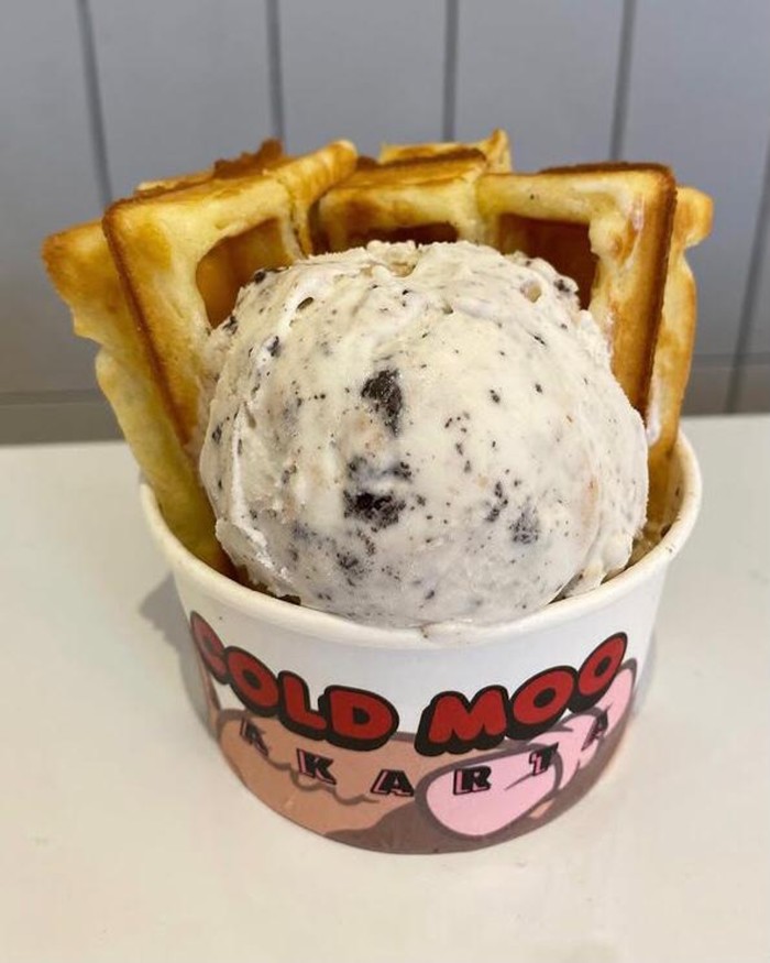 Cold Moo bisa menjadi pilihan yang tepat bagi para pecinta es krim di Jakarta. Tempat ini terkenal dengan es krim swirl dan gelato dengan tekstur padat dan rasa susu yang khas, serta berbagai pilihan topping yang kreatif.