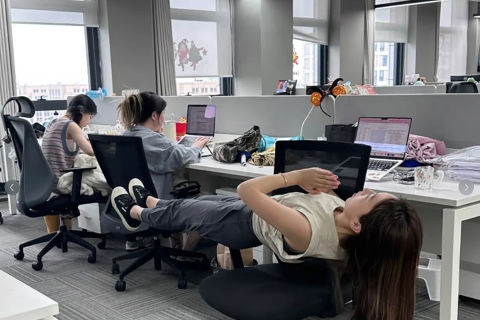 Mengutip dari laman SCMP, pada awal Juli lalu, seorang pengguna internet memposting gambar di platform media sosial Xiaohongshu sembari membubuhkan keterangan “pekerja kantor punya gym sendiri”. Postingan tersebut memperlihatkan seorang rekan kerja perempuan yang melakukan workout quick charge saat sedang menunggu lift.