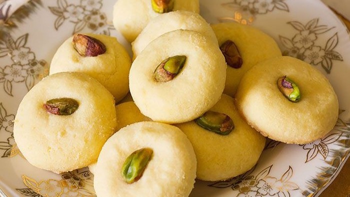 Kue kering asal Persia ini sangat unik, lho! Sebagai hiasan, kue ini menggunakan kelopak bunga mawar sebagai taburan.