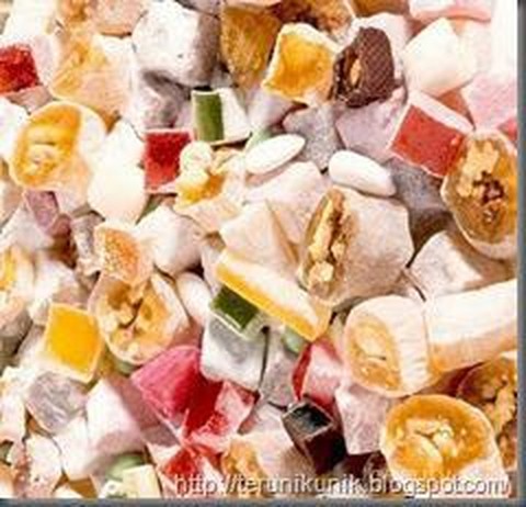 Sekarang giliran negara Turki yang juga nggak mau kalah dengan permen Turkish Delight nya yang memiliki tekstur lembut dan kenyal menyerupai jelly. Tidak hanya itu, rasa permen ini kian nikmat dengan ditambah kacang-kacangan didalamnya seperti walnut, almond dan kenari plus taburan gula halus di sekelilingnya.https://blog.tokopedia.com/2015/05/manjakan-lidahmu-dengan-menikmati-permen-khas-dari-8-negara-ini/