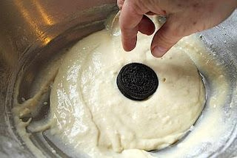- Masukan oreo kedalam adonan hingga seluruh biskuit tertutup total