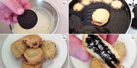 - Panaskan minyak dengan api kecil lalu goreng oreo hingga bewarna kekuningan.