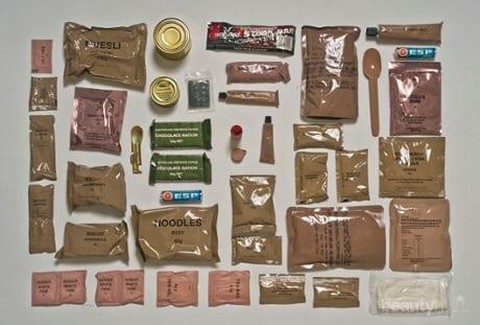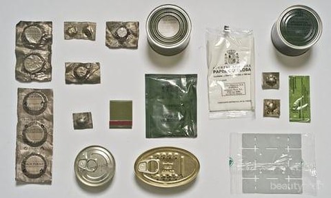 Melihat makanan tentara Australia akan mengingatkanmu pada makeup samples yang sering dibagi-bagikan di konter. Ada banyak sekali makanan yang dibungkus kecil-kecil: Vegemite sandwich biscuits, jam sandwich biscuits, susu kental manis, keju cheddar, meatballs, chilli tuna pasta, permen, minuman ringan, dan cokelat.