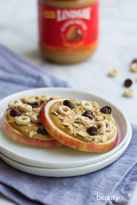 Jika kamu adalah penggemar biskuit, cobalah menggantinya dengan apel dan selai kacang. Kombinasi kedua makanan ini bisa menjadi menu camilan sehat kesukaanmu. Apel merupakan buah yang kaya akan serat dan antioksidan polifenol sehingga berperan baik dalam meningkatkan kesehatan usus dan mengurangi risiko penyakit jantung. Sedangkan selai kacang memiliki manfaat tambahan untuk kesehatan jantung. Telah terbukti selai kacang mampu meningkatkan HDL (kolesterol baik) dan mengurangi LDL (kolesterol buruk) dan trigliserida.