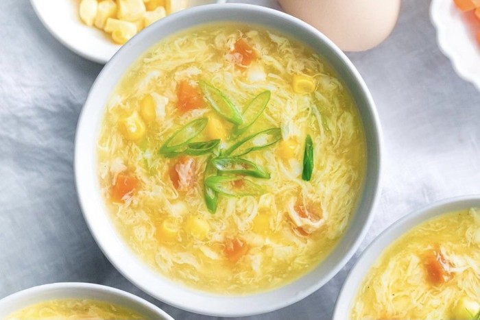 Sup telur atau Gyeran Guk ala Korea siap disajikan bersama nasi hangat untuk santapan menu sahur yang bergizi.